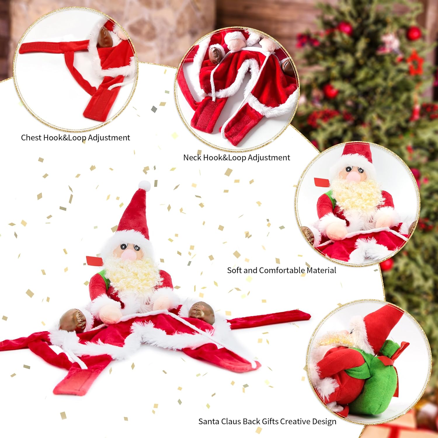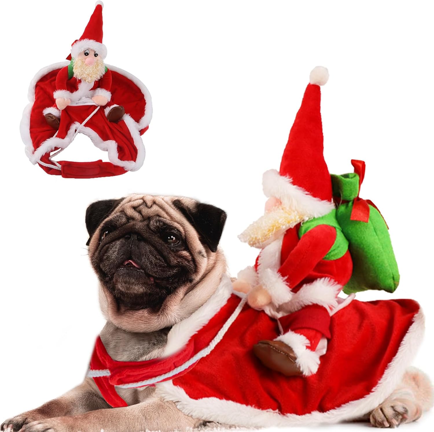DELIFUR Santa Dog Costume – Christmas Santa Claus Riding Pet Outfit (Large)